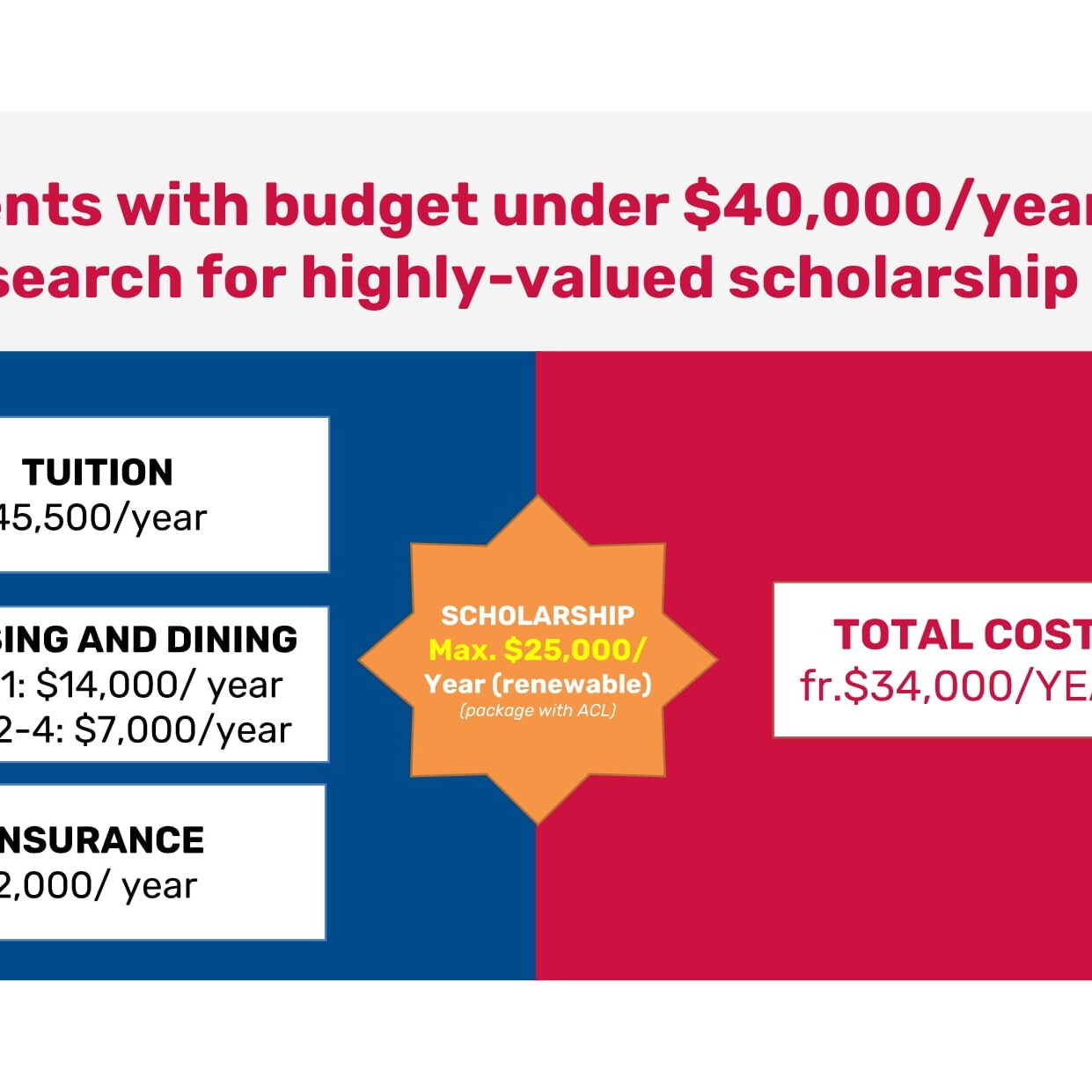 - Học bổng: lên tới $25,000/năm (tương đương ~55% học phí)