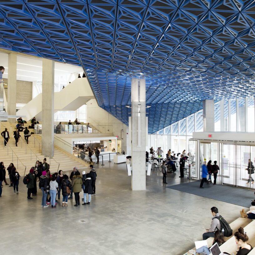 Toronto Metropolitan University (TMU) tọa lạc ngay tại trung tâm Toronto – thành phố lớn, sôi động và đa văn hóa bậc nhất Canada, mang đến cho sinh viên môi trường học tập gắn liền với nhịp sống đô thị hiện đại. Trường sở hữu khuôn viên độc đáo, với các tòa nhà học tập và nghiên cứu hòa mình vào không gian thành phố, giúp sinh viên dễ dàng tiếp cận hệ thống giao thông công cộng và các tiện ích chỉ trong vài phút đi bộ.